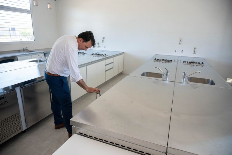 Otra de las instituciones visitadas por el ministro fue la Escuela de Oficios Manuel Belgrano, donde la coordinadora del establecimiento, Analía Zugasti, informó: “para este 2026 tenemos proyectado entre 25 y 30 formaciones. Estamos poniendo en funcionamiento toda el área de prácticas, con los cuatro talleres listos. El área de Metalmecánica, Electricidad, Construcciones, Carpintería, Mecánica del Automotor; el área de Gastronomía, con una cocina modelo en la provincia, y el área de Laboratorio también, para las formaciones vinculadas al agro. Todo esto, sumado a las áreas que ya teníamos, como Textil, Artes Aplicadas, Inglés o Estética, hacen más de 20 formaciones que tenemos listas para este 2026”.