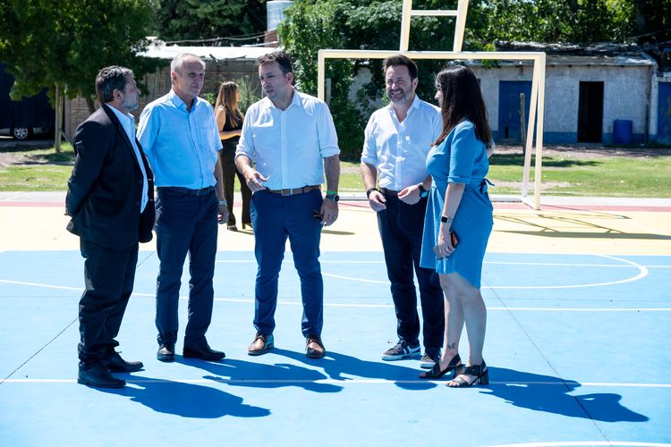 El recorrido en San Martín también tuvo como destino la escuela 1-581 Martín Fierro, ubicada en el barrio San Pedro. En ese establecimiento educativo, el titular de la DGE, junto al intendente, observó las obras del nuevo playón deportivo, que beneficiará a más de 400 estudiantes que asisten a la institución. Las tareas en acuerdo con el Municipio incluye la colocación de arcos de fútbol, otros elementos deportivos y la tela de media sombra.